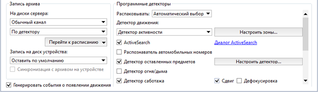 Параметр Распаковывать позволяет выбрать какой из потоков, основной или субпоток, будет использоваться для работы программного детектора движения. В большинстве случаев достаточно качества видео, передаваемого дополнительным потоком. Кроме того, использование субпотока существенно экономит ресурсы центрального процессора сервера.