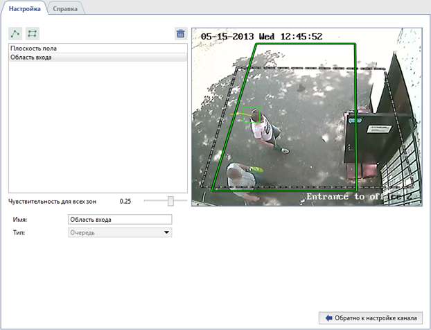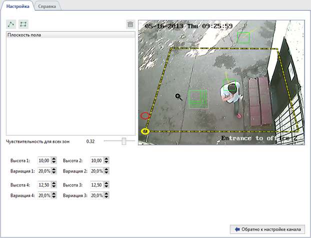 В открывшемся окне настроек детектора уже будет создана зона Плоскость пола, которую необходимо настроить.