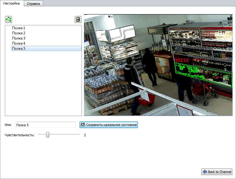 Детектор полок предназначен для отслеживания наличия товара на полках магазина. То есть, при его использовании будут сравниваться текущее состояние заданной области съемки с сохраненным ранее изображением и сообщать оператору о его изменении.