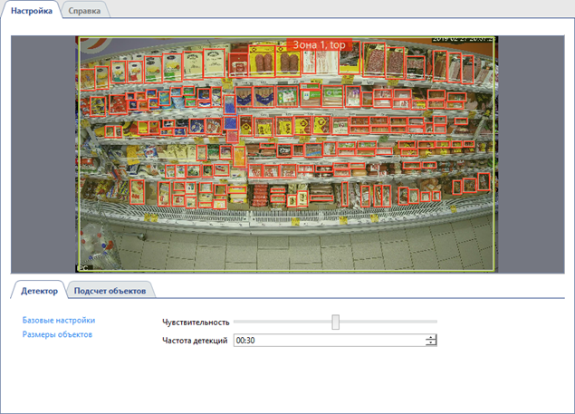 Нажав на ссылку Настройка детектора пустых полок откроется окно настроек детектора.