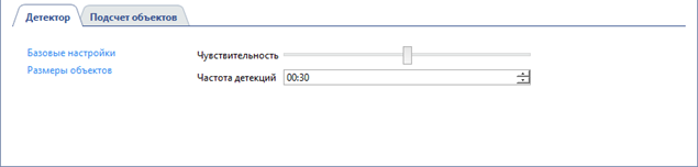В базовых настройках детектора необходимо выбрать Чувствительность работы детектора, и определить Частоту детекции.