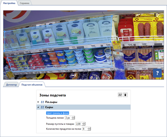 Для каждой созданной зоны необходимо указать параметры, по котором детектор будет определять наличие пустых мест на полках: