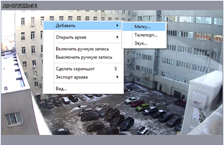 Для добавления метки нажмите правую кнопку мыши на изображении и в контекстном меню выберите Добавить -> Метку.... В открывшемся окне выберите вид метки, нажав на изображение, настройте прозрачность и введите текст, который будет отображаться при наведении курсора.