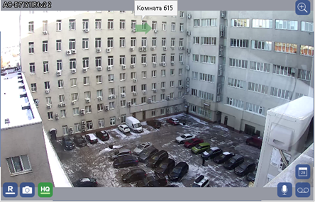 - В центральной части окна вы видите изображение с камеры в режиме реального времени и можете управлять камерой так же, как в режиме оператора (например, управлять поворотным механизмом камеры).