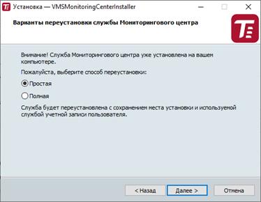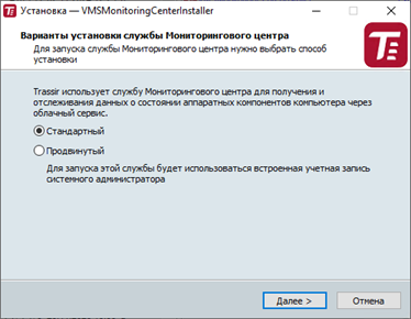 Выберите вариант установки службы и нажмите Далее.