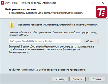- Установка службы должна выполняться под учетной записью с правами администратора.