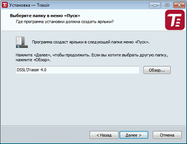 Укажите папку в меню пуск, где будут созданы ярлыки программы. Нажмите кнопку Далее.