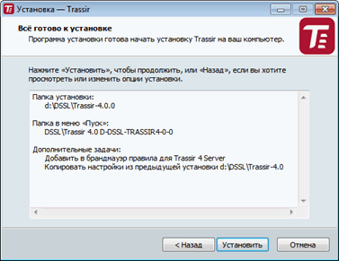 На завершающем этапе мастер покажет выбранные параметры установки. Нажмите кнопку Установить.