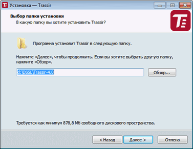 Задайте папку установки указав путь вручную, либо воспользовавшись кнопкой Обзор. Нажмите кнопку Далее.