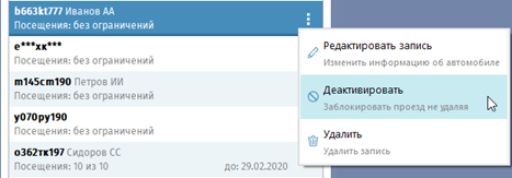 Деактивировать или Активировать - деактивировать/активировать список номеров. При этом номера, находящиеся в деактивированном списке, не будут подсвечиваться при распознавании.
