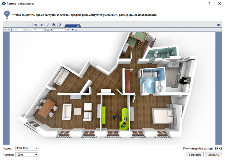 При помощи настроек Формат и Размеры установите параметры сжатия изображения.