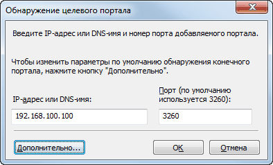 Введите IP-адрес сетевого хранилища и укажите порт службы iSCSI, указанный при настройке в сетевого хранилища.