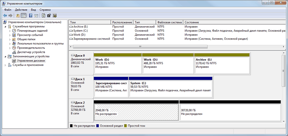 В случае успешного выполнения всех операций новый диск появится в ОС. Для его обнаружения откройте Компьютер -> Управление -> Управление дисками