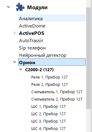 В поле Состояние отображается статус подключения. Если все параметры указаны корректно, то появится строка Орион подключен, а в дерево объектов сервера будут добавлены новые объекты СКУД "Орион Про".