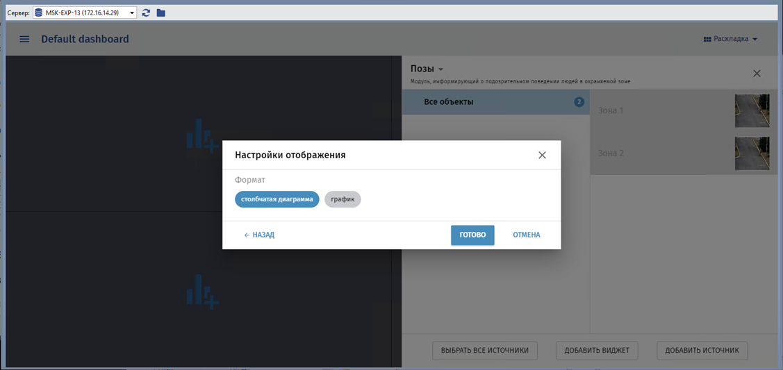 Для визуализации данных о работе детектора поз используется модуль Аналитика. В данном разделе описаны параметры и порядок его настройки.