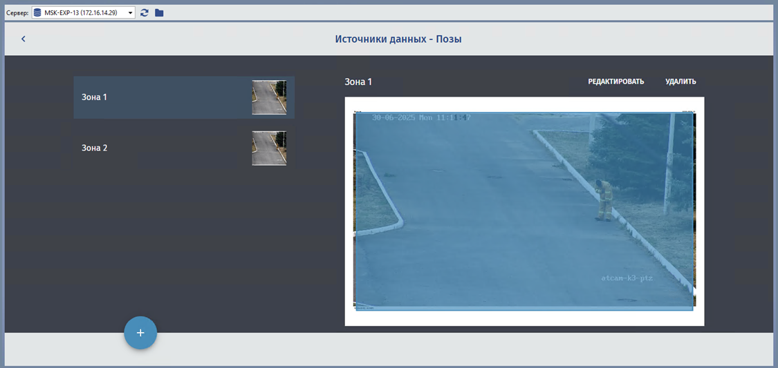 В качестве источника данных для детектора поз используются Зоны подсчета, созданные на канале (см. раздел Настройка детектора поз на канале).