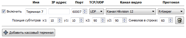 - Порт на 60000 больше номера терминала (например: терминал 13 - порт 60013, терминал 37 - порт 60037)