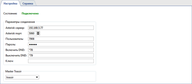 В поле Состояние отображается статус подключения к IP АТС. Если все параметры указаны корректно, то появится строка Подключено. В противном случае вы увидите сообщение об ошибке.