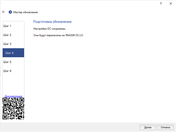 На Шаге 4 мастер обновления сохранит текущие настройки сервера для последующего переноса их на TRASSIR OS 2.0.