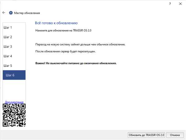 Нажмите кнопку Обновить до TRASSIR OS 2.0.
