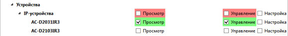 - Просмотр - определяет, может ли пользователь видеть объект в системе(если это устройство, канал или сервер) и/или видеть определенные настройки системы(состояние сервера, настройки сервера, модули или сеть).