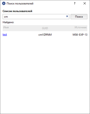 При обнаружении случаев, когда видео или скриншот попал к третьим лицам, вы можете определить имя пользователя и клиент/сервер, с которого произошла утечка конфиденциальной информации. Для этого нажмите на кнопку Поиск пользователей и, в открывшемся окне введите GUID пользователя (Имя пользователя) или его часть, который изображен на видео или скриншоте. После нажатия на кнопку Поиск данные о пользователе будут показаны ниже.