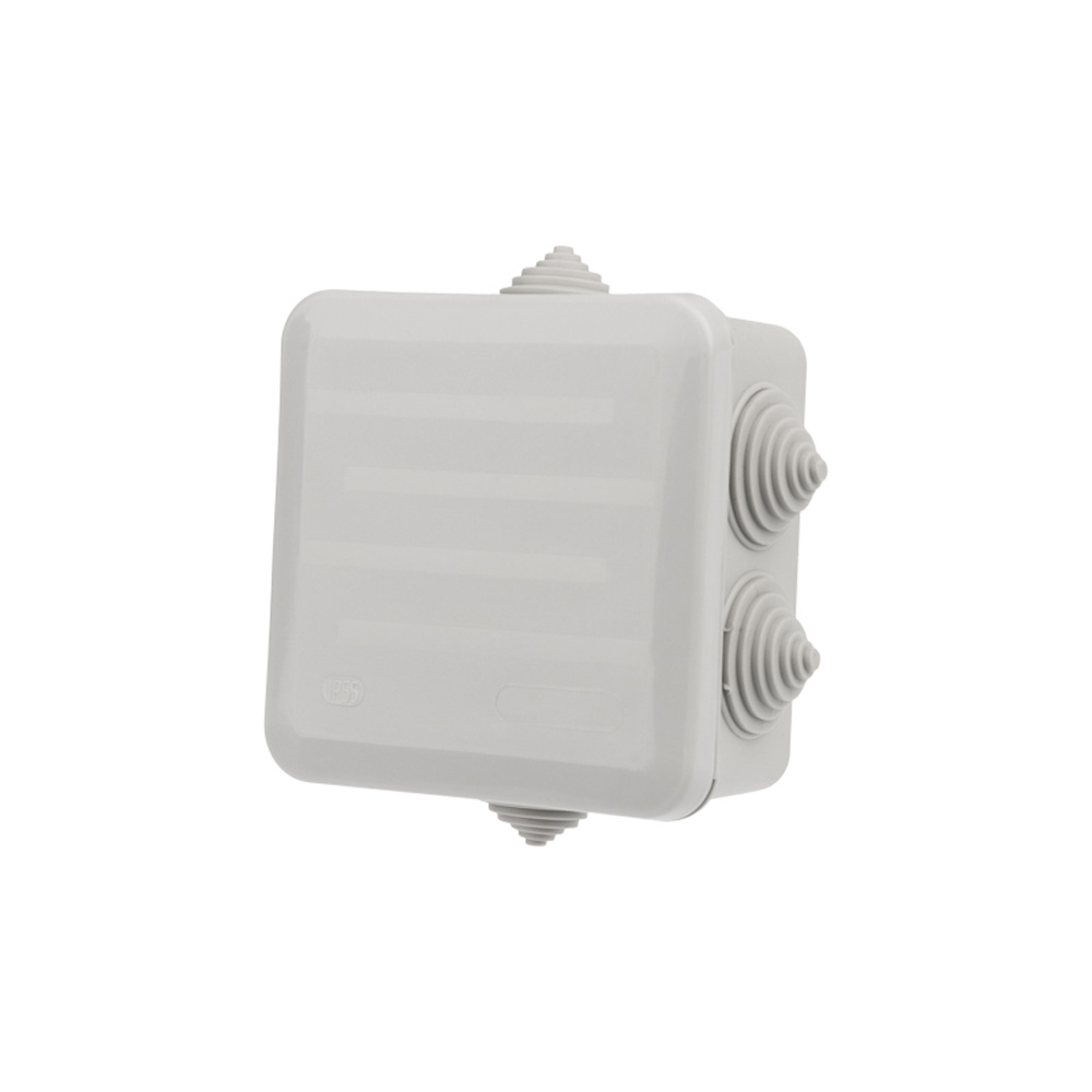 Распаечная коробка Rexant 28-3056 для защиты кабельных соединений от пыли, влаги и механических повреждений укомплектована вводными сальниками.