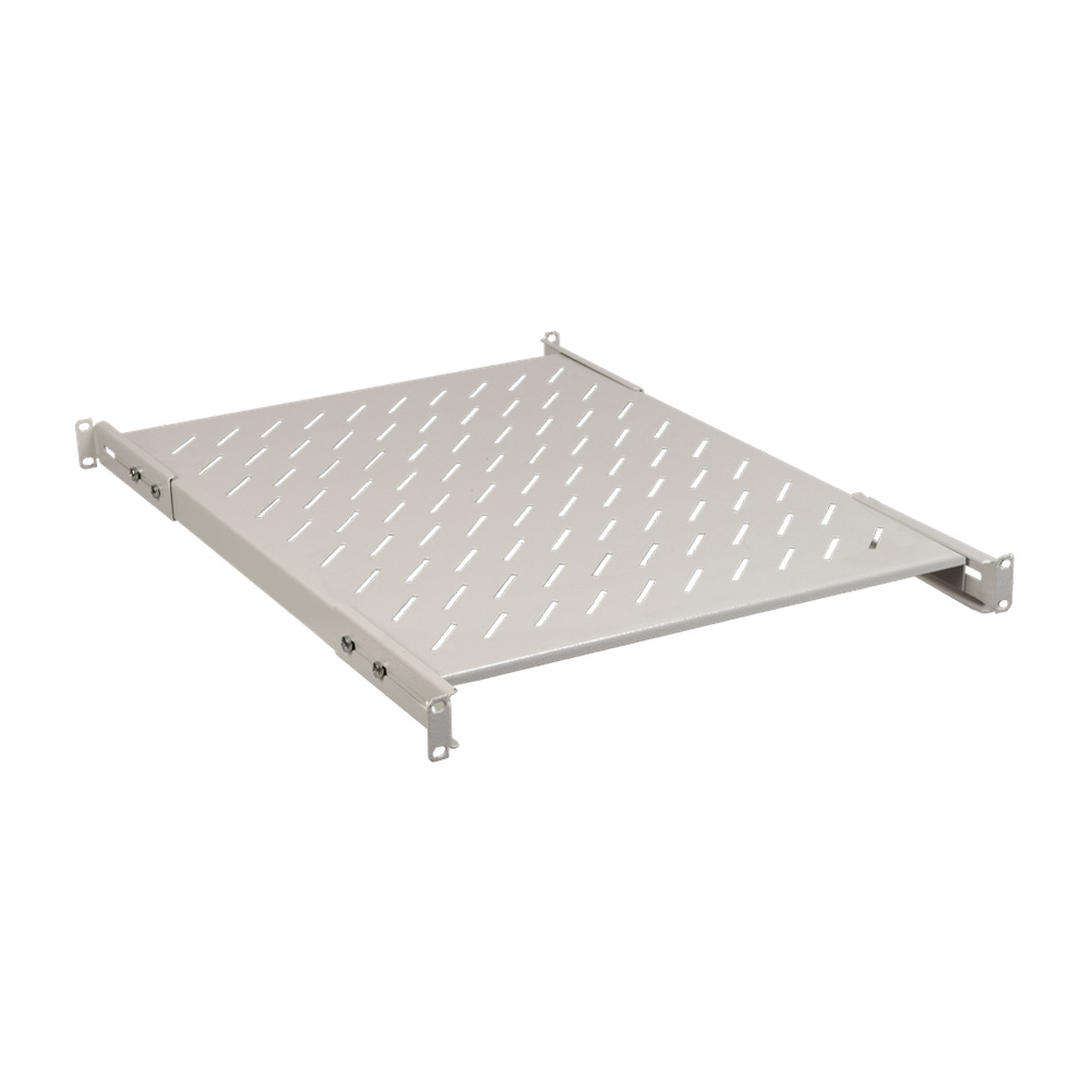 Стационарная полка ITK FS35-800PI-R для размещения в телекоммуникационном шкафу типоразмера 19" оборудования, не приспособленного к установке на направляющие, изготовлена из стали с полимерным порошковым покрытием светло-серого (RAL 7035) цвета.