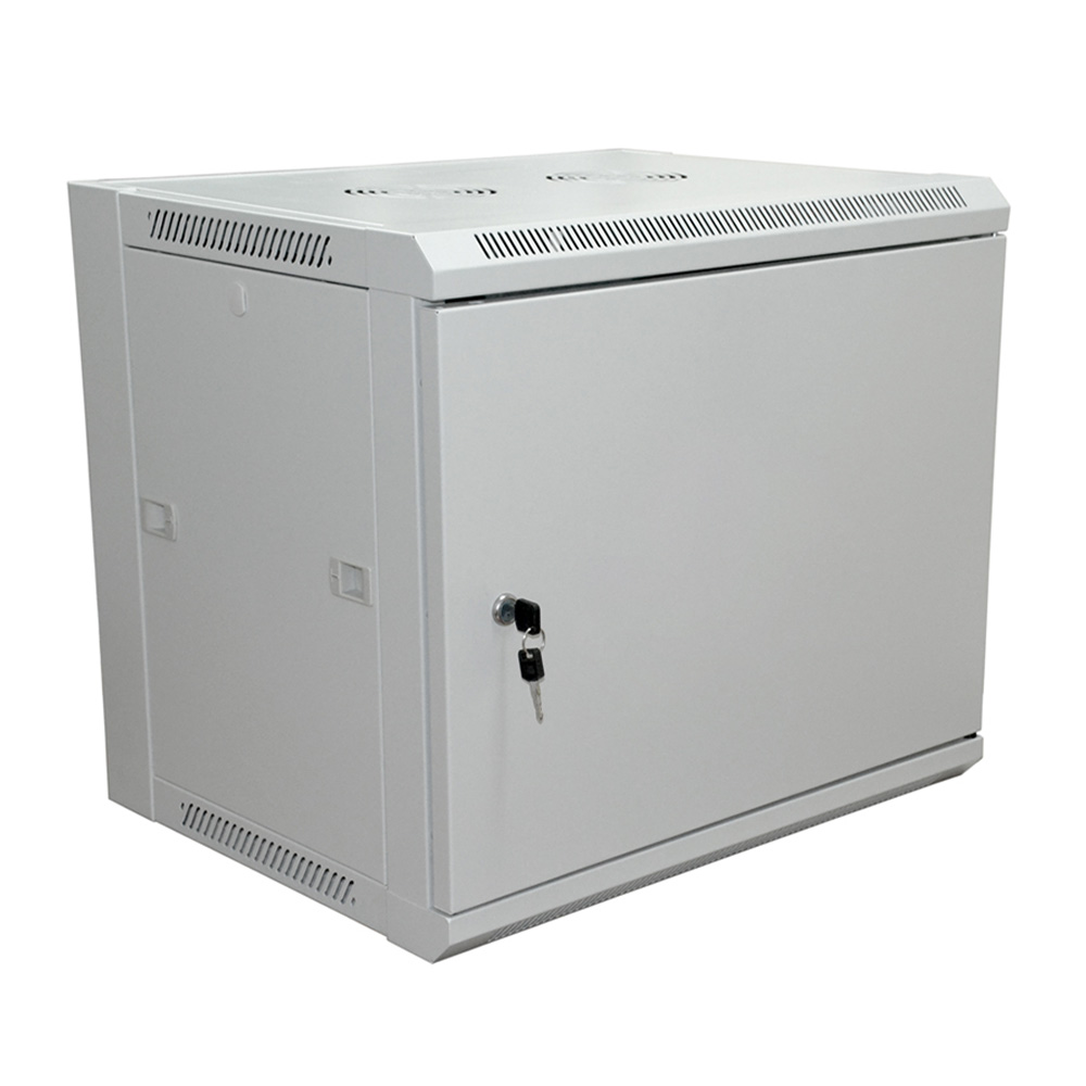 Односекционный настенный шкаф Rexant 04-2220 предназначен для компактного размещения 19-дюймового телекоммуникационного и слаботочного оборудования в сетевых, серверных и охранных системах. Конструкция высотой 6U и полезной глубиной 600 мм позволяет установить коммутаторы, патч-панели, блоки питания и периферию, а запас по нагрузке до 90 кг обеспечивает безопасную эксплуатацию даже при плотной компоновке. Каркас шкафа выполнен из листовой стали толщиной 1,5 мм и защищён порошковым покрытием светло-серого цвета RAL7035, стойким к истиранию и коррозии. Передняя дверь из 5-мм тонированного ударопрочного стекла снабжена замком и может навешиваться на правую или левую сторону; угол открытия достигает 220°, а съёмные боковые панели на защёлках обеспечивают свободный доступ к оборудованию. В крыше предусмотрены посадочные места под вентиляторный модуль, а в верхней и нижней панелях — кабельные вводы. Пара вертикальных 19″ направляющих со шкалой U упрощает монтаж устройств, в комплект включены два опорных уголка. Шкаф поставляется в разобранном виде в одном гофрокартонном месте, что снижает расходы на доставку и хранение.