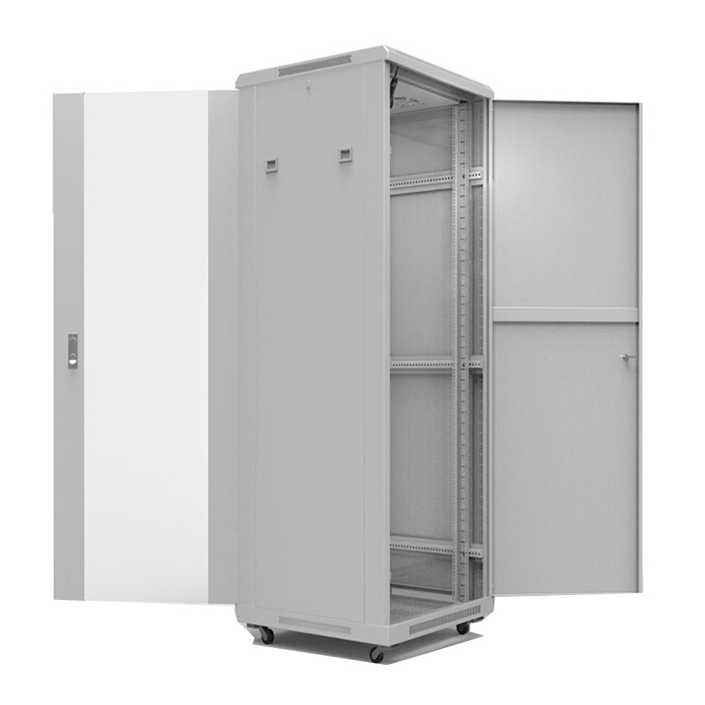 Напольный шкаф Rexant 04-2307 предназначен для установки активного и пассивного 19″ оборудования высотой 42U. Прочный стальной каркас толщиной 2 мм обеспечивает грузоподъёмность до 800 кг, а двери, дно и крыша из стали 1,2 мм гарантируют устойчивость и долговечность конструкции. Передняя дверь выполнена из 5-мм тонированного ударопрочного стекла в металлической раме и комплектуется замком, задняя металлическая дверь оборудована замком с откидной ручкой. Обе створки можно навешивать с любой стороны, а угол их открытия составляет до 220°. Съёмные боковые панели на защёлках обеспечивают быстрый доступ к аппаратуре. Внутри установлены две пары 19″ направляющих с разметкой юнитов, регулируемых по глубине, что облегчает монтаж. Крышка оснащена съёмными панелями под вентиляторный модуль, а верхняя и нижняя панели содержат съёмные секции для аккуратного ввода кабелей. Полезная монтажная глубина — 920 мм при размерах корпуса 600 × 1000 × 2055 мм (Ш × Г × В). Регулируемые опоры входят в комплект. Поставка осуществляется в разобранном виде в трёх коробах, что упрощает транспортировку и снижает затраты. Цвет — RAL7035, степень защиты — IP20.