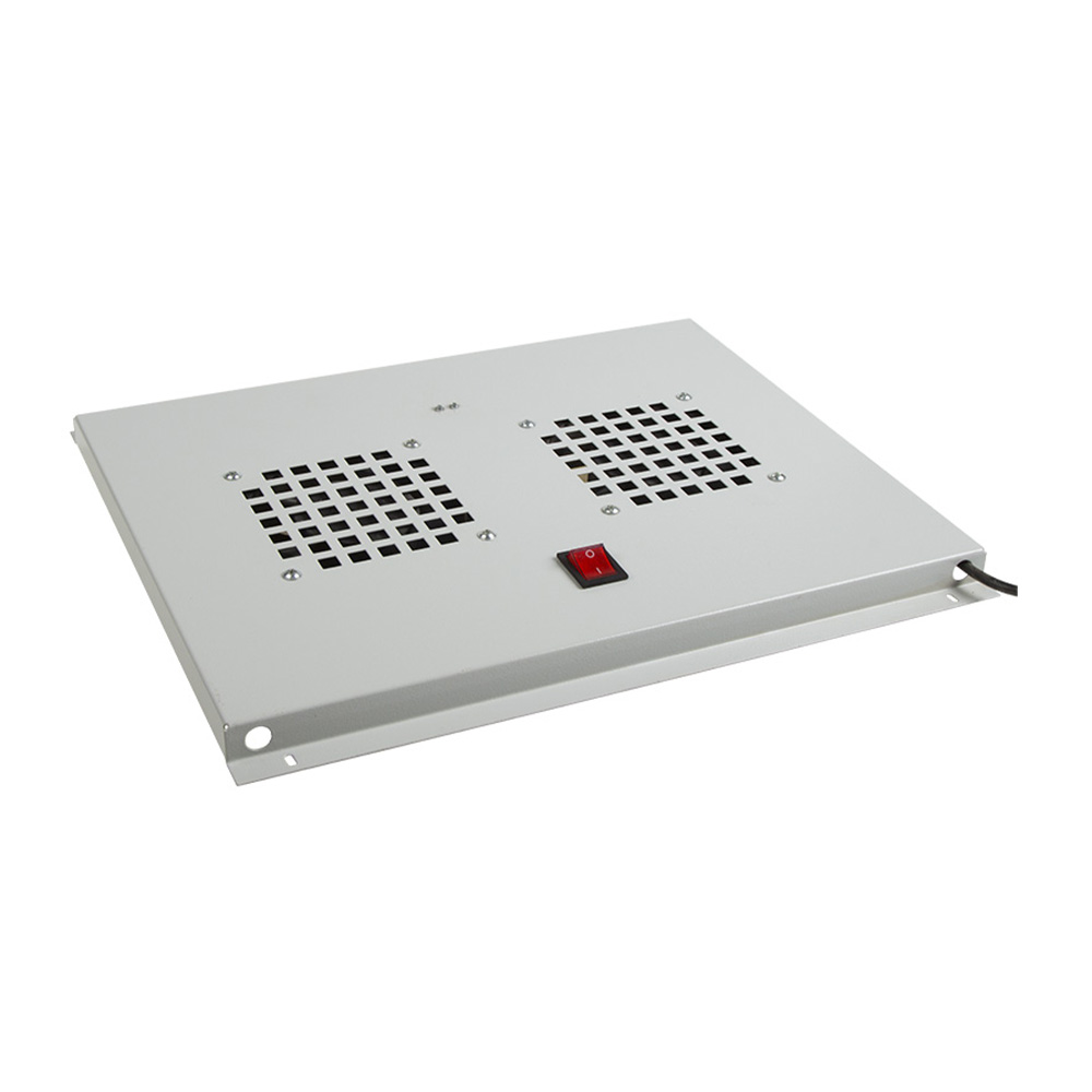 Потолочный вентиляторный модуль Rexant 04-2600 предназначен для организации принудительной циркуляции воздуха внутри телекоммуникационных и серверных шкафов. Устройство обеспечивает одновременно вытяжку нагретого воздуха и приток свежего, а встроенные фильтры задерживают пыль и мелкие загрязнения, повышая надежность установленного оборудования. Модуль монтируется в верхнюю часть шкафов глубиной 600 мм, что позволяет эффективно удалять наиболее горячие воздушные массы, образующиеся в верхней зоне. Встроенные два вентилятора создают суммарный воздушный поток 350 м3/ч при максимальной скорости вращения 2500 об/мин и умеренном уровне шума 39 дБ. Питание от сети 220/240 В 50/60 Гц, а потребляемая мощность не превышает 50 Вт, поэтому изделие экономично и не требует отдельной линии электропитания. Управление производится с помощью кнопки на корпусе, что упрощает эксплуатацию и позволяет быстро прервать работу при обслуживании оборудования. Серое лакокрасочное покрытие защищает металл от коррозии и сохраняет аккуратный внешний вид на протяжении всего срока службы. Модуль поставляется со шнуром питания, что ускоряет ввод устройства в эксплуатацию.