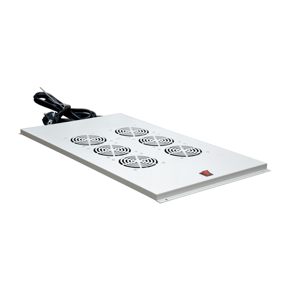 Потолочный вентилятор модуля Rexant 04-2603 предназначен для организации активного воздухообмена в телекоммуникационных шкафах серии Standart глубиной 1000 мм. Шесть высокооборотных вентиляторов общей производительностью 700 м куб./час эффективно удаляют нагретый воздух из верхней зоны шкафа и обеспечивают приток охлаждённого, поддерживая оптимальный температурный режим оборудования. Модуль подключается к сети 220…240 В 50/60 Гц через штатный шнур; включение выполняется кнопкой на корпусе. Стальная панель покрыта стойкой серой порошковой эмалью. Низкий уровень шума 42 дБ и умеренная потребляемая мощность 100 Вт делают устройство экономичным и комфортным в работе. Толщина всего 44 мм и винтовое крепление упрощают потолочный монтаж без доработки шкафа, сохраняя полезный объём. Rexant 04-2603 — надёжное и простое решение для серверных и кроссовых залов, требующих эффективного охлаждения.