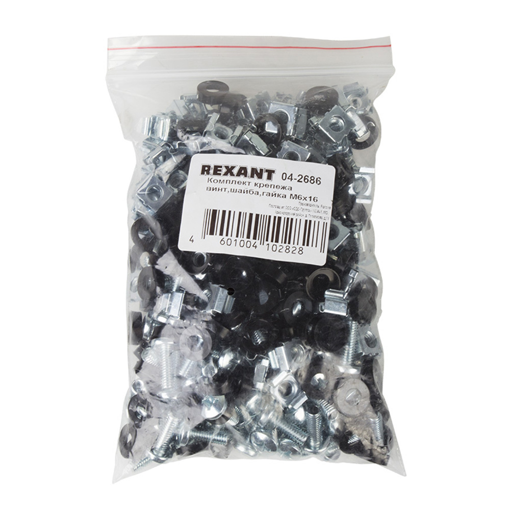 Комплект крепежа «винт+шайба+гайка M6x16» Rexant 04-2686