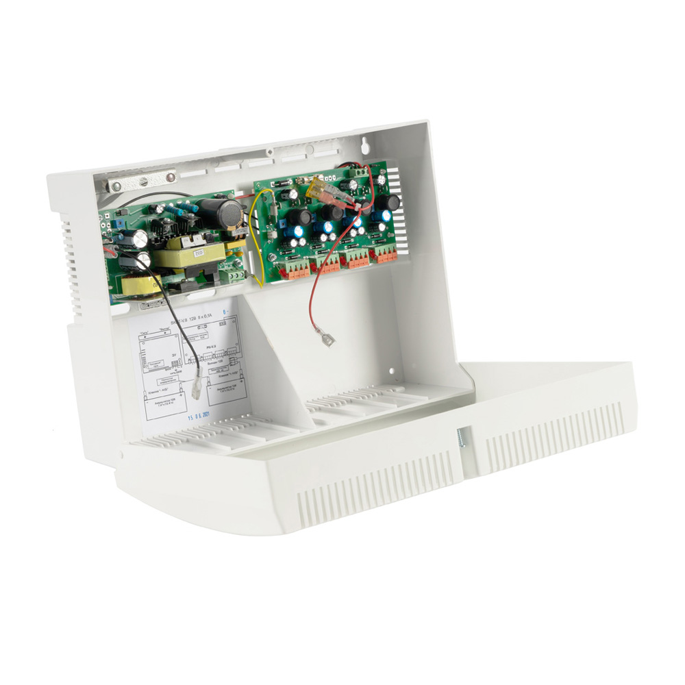 ИБП СКАТ 147 SKAT-VM.8 предназначен для питания нагрузки стабилизированным напряжением при наличии напряжения сети и в режиме резерва от АКБ. Устройство обеспечивает автоматический переход на резервное питание при снижении напряжения сети ниже допустимого уровня или при отключении сети, а также оптимальный заряд аккумуляторов при наличии сети. Предусмотрены независимая плавная регулировка выходного напряжения по каналам (для каждой пары выходов), фильтрация помех по каждому каналу и электронная защита выходов от перегрузки по току, включая короткое замыкание, с восстановлением после устранения перегрузки. Реализована защита батареи от глубокого разряда и индикация наличия напряжения сети и выходного напряжения светодиодами «Сеть» и «Выход». Корпус рассчитан на установку двух АКБ; рекомендованы герметичные необслуживаемые свинцово-кислотные аккумуляторы 12 В каждый ёмкостью 7-12 Ач.