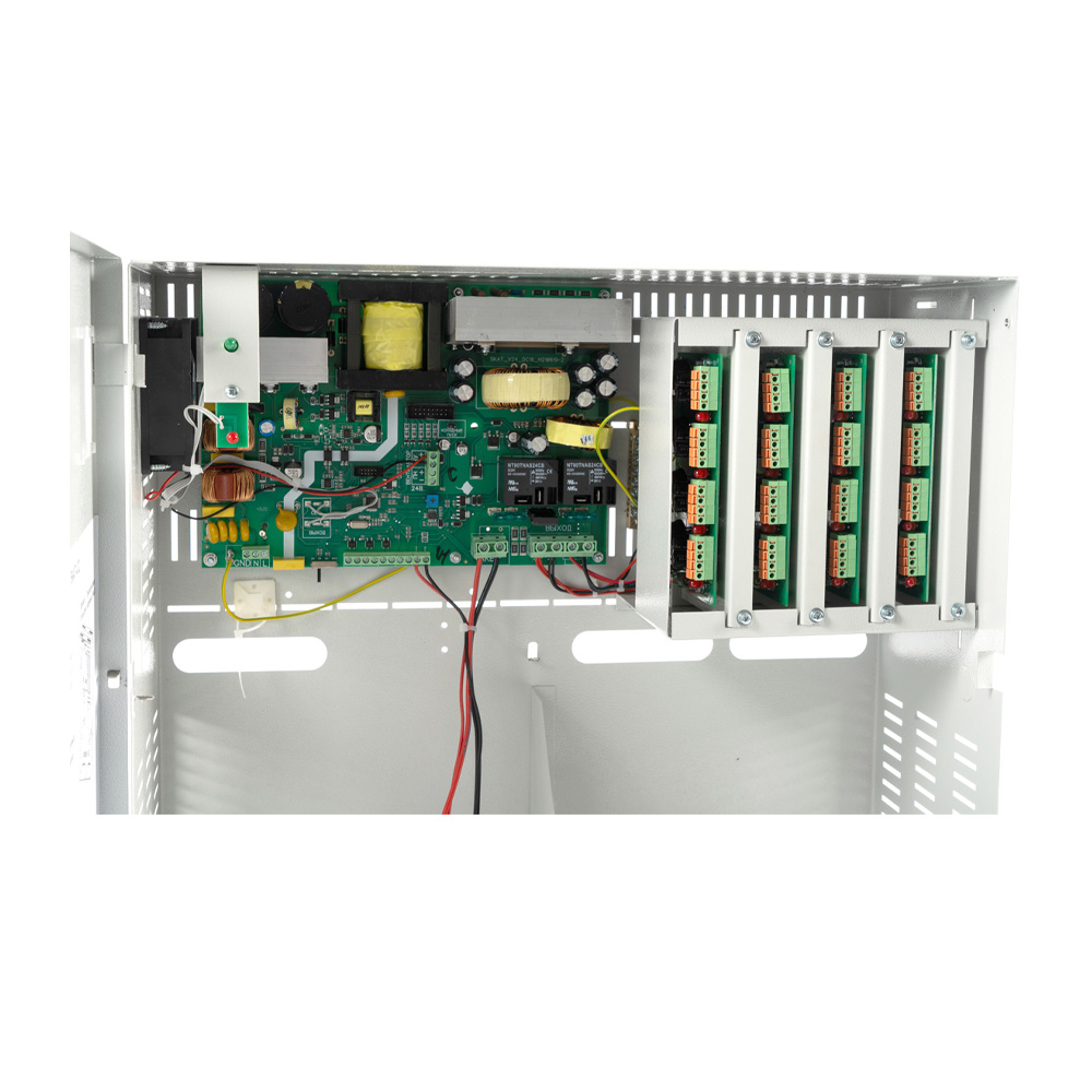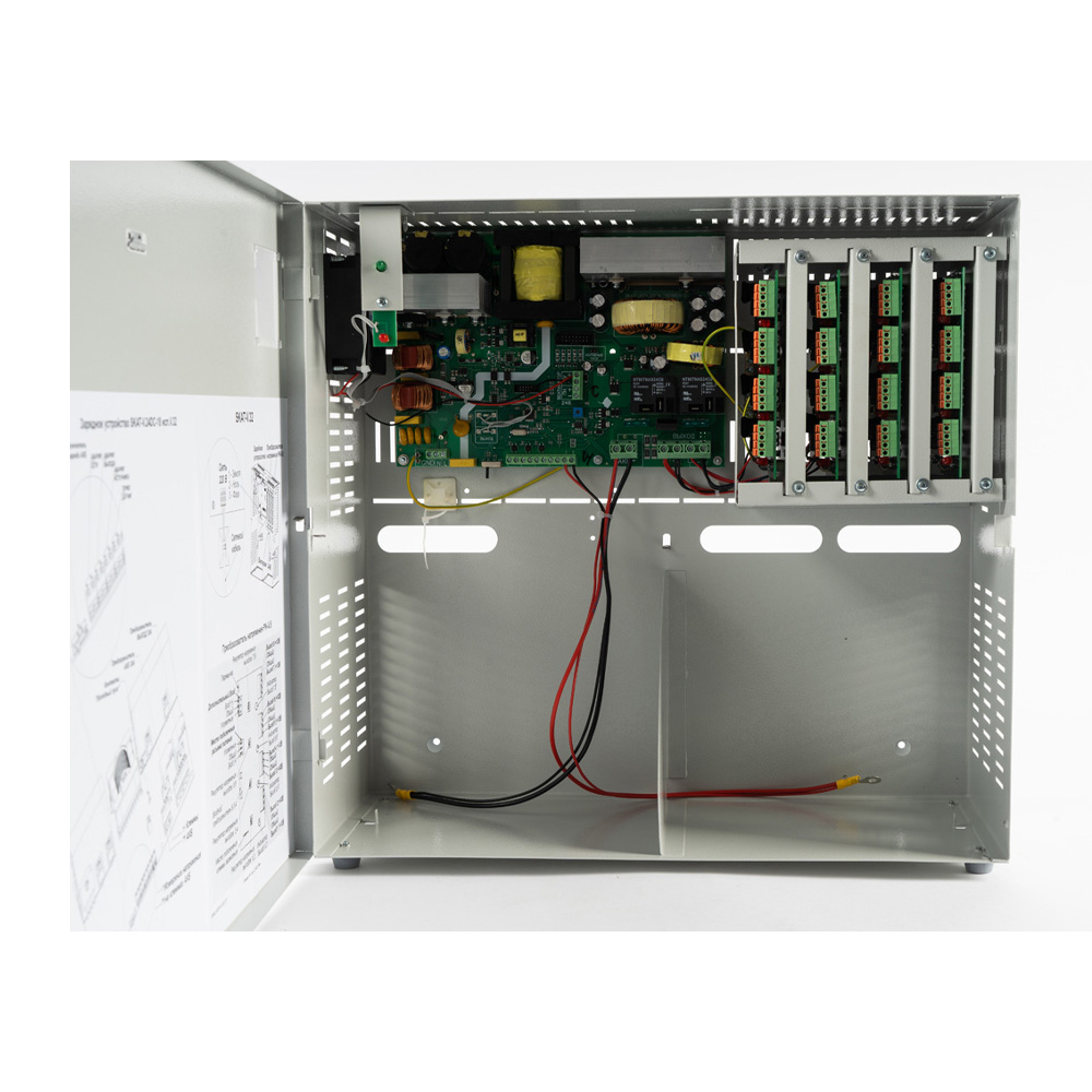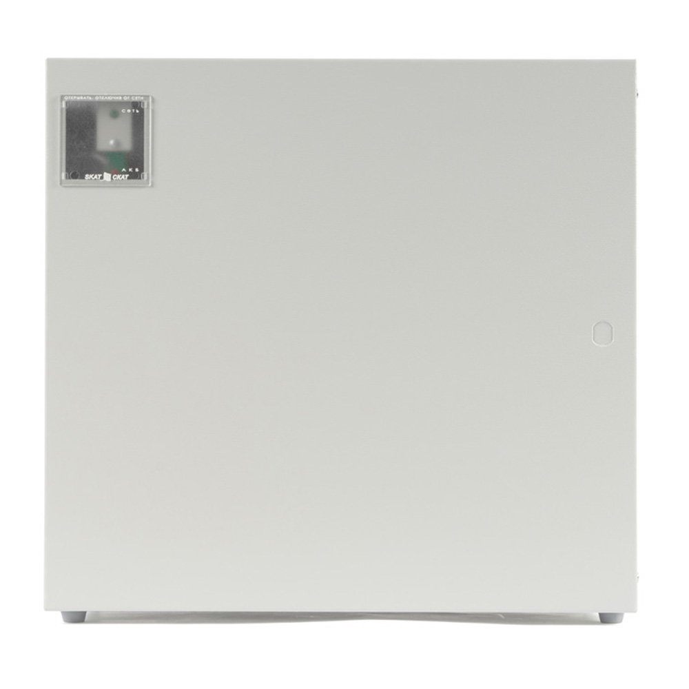 ИБП СКАТ 840 SKAT-VM.32 — источник бесперебойного питания с 32 выходами по 0.5 А (допускается объединение пары выходов до 1.0 А) и корпусом под 2 АКБ 40 Ач. Устройство обеспечивает независимую плавную регулировку выходного напряжения по каналам и фильтрацию помех по каждому каналу, что помогает снизить взаимное влияние нагрузок. Реализована электронная защита выходов от перегрузки по току и короткого замыкания с восстановлением работы после устранения перегрузки, а также защита нагрузки от повышенного выходного напряжения (свыше 18 В). ИБП заряжает АКБ от сети 220 В, 50 Гц и автоматически переходит в режим резервного питания при снижении/отключении сети при суммарном токе потребления не более 20 А. Предусмотрены защита от перегрева, контроль наличия АКБ, защита от переполюсовки и КЗ клемм АКБ, отключение нагрузки для предотвращения глубокого разряда, а также 5 информационных выходов для диагностики/управления внешней автоматикой.