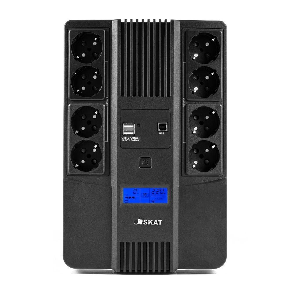 Компактный источник бесперебойного питания со встроенным стабилизатором напряжения СКАТ 8934 SKAT-UPS 1000-AID-IN-1X9-8