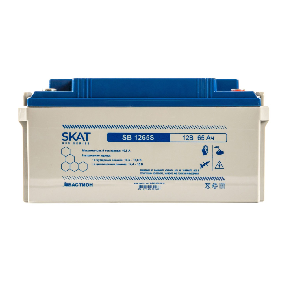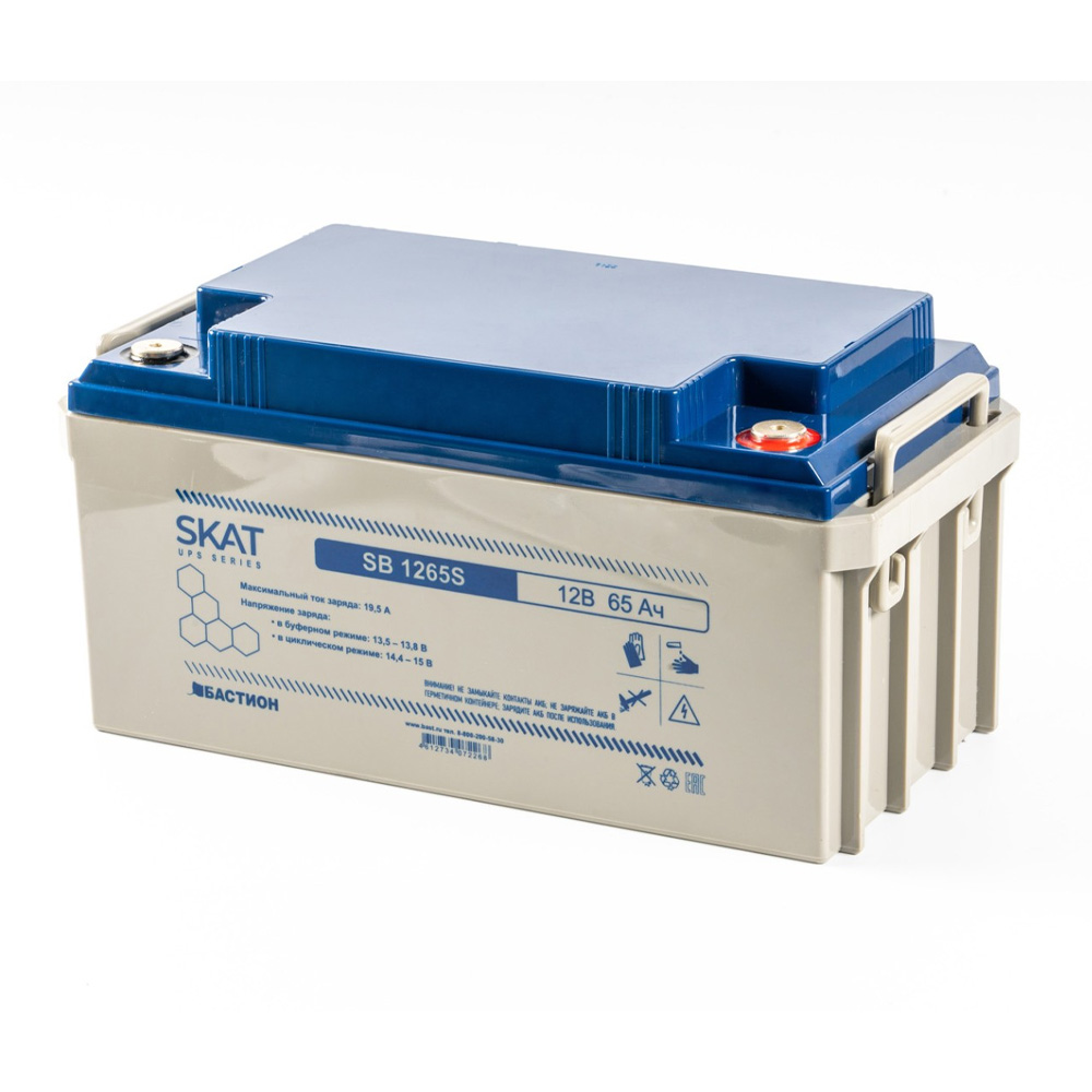 Свинцово-кислотный акб СКАТ 8972 SKAT SB 1265S предназначен для использования в составе системы резервного питания. Это герметичный необслуживаемый аккумулятор серии SKAT SB S с улучшенными разрядными характеристиками, повышенной токоотдачей, низким внутренним сопротивлением и высокой плотностью энергии. АКБ выполнен по технологии AGM (Absorbent Glass Mat) с системой рекомбинации газов VRLA, что позволяет рекомбинировать 99% выделяемого газа; герметизация реализована клапаном для сброса избыточного давления и предотвращения деформации корпуса. Аккумулятор рассчитан на работу в ИБП для ЦОД, объектов энергетики, офисного и промышленного оборудования, транспортной инфраструктуры, медицинского оборудования, а также в системах солнечной и ветровой энергетики. Низкий саморазряд позволяет хранить АКБ без подзаряда до 6 месяцев, а также допускается эксплуатация в любом положении, кроме вниз клеммами. Заявленный увеличенный срок службы — 12 лет.