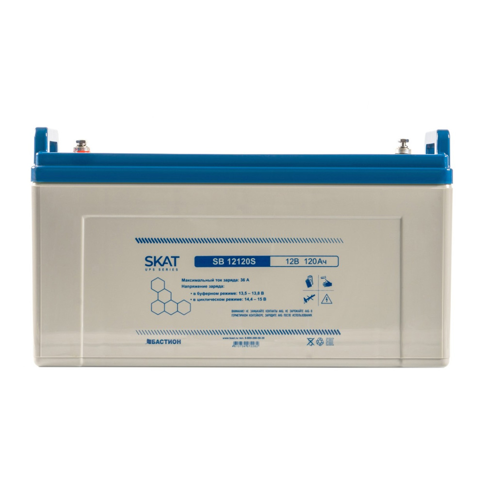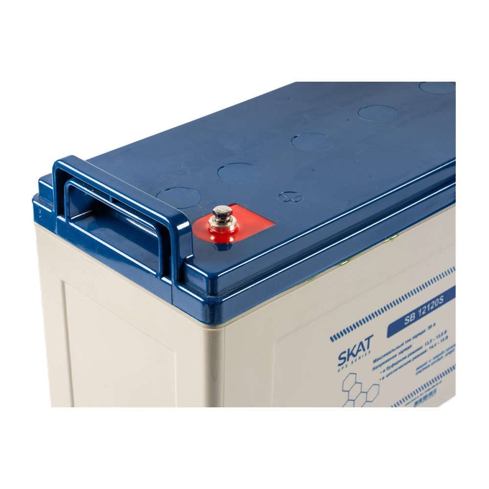 Аккумулятор герметичный свинцово-кислотный необслуживаемый СКАТ 8974 SKAT SB 12120S — надёжный источник резервного питания, рассчитанный на профессиональное использование в системах бесперебойного электропитания (ИБП), центрах обработки данных, энергетике, медицине и промышленности. Модель выполнена по технологии AGM с системой рекомбинации газов VRLA, что обеспечивает высокую безопасность эксплуатации и исключает необходимость технического обслуживания. Повышенная токоотдача и низкое внутреннее сопротивление гарантируют стабильную работу оборудования при высоких нагрузках. Увеличенный срок службы до 12 лет делает аккумулятор экономически выгодным решением, а возможность установки в любом положении, кроме клеммами вниз, упрощает монтаж. За счёт низкого саморазряда АКБ сохраняет до 80% ёмкости после 6 месяцев хранения без подзаряда. Высокая плотность энергии и лёгирование свинцовых пластин кальцием обеспечивают высокую удельную энергоотдачу и минимальные потери мощности даже при отрицательных температурах.