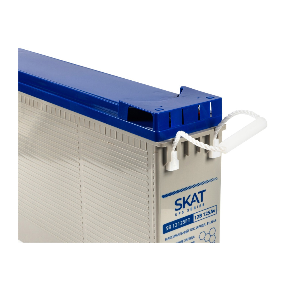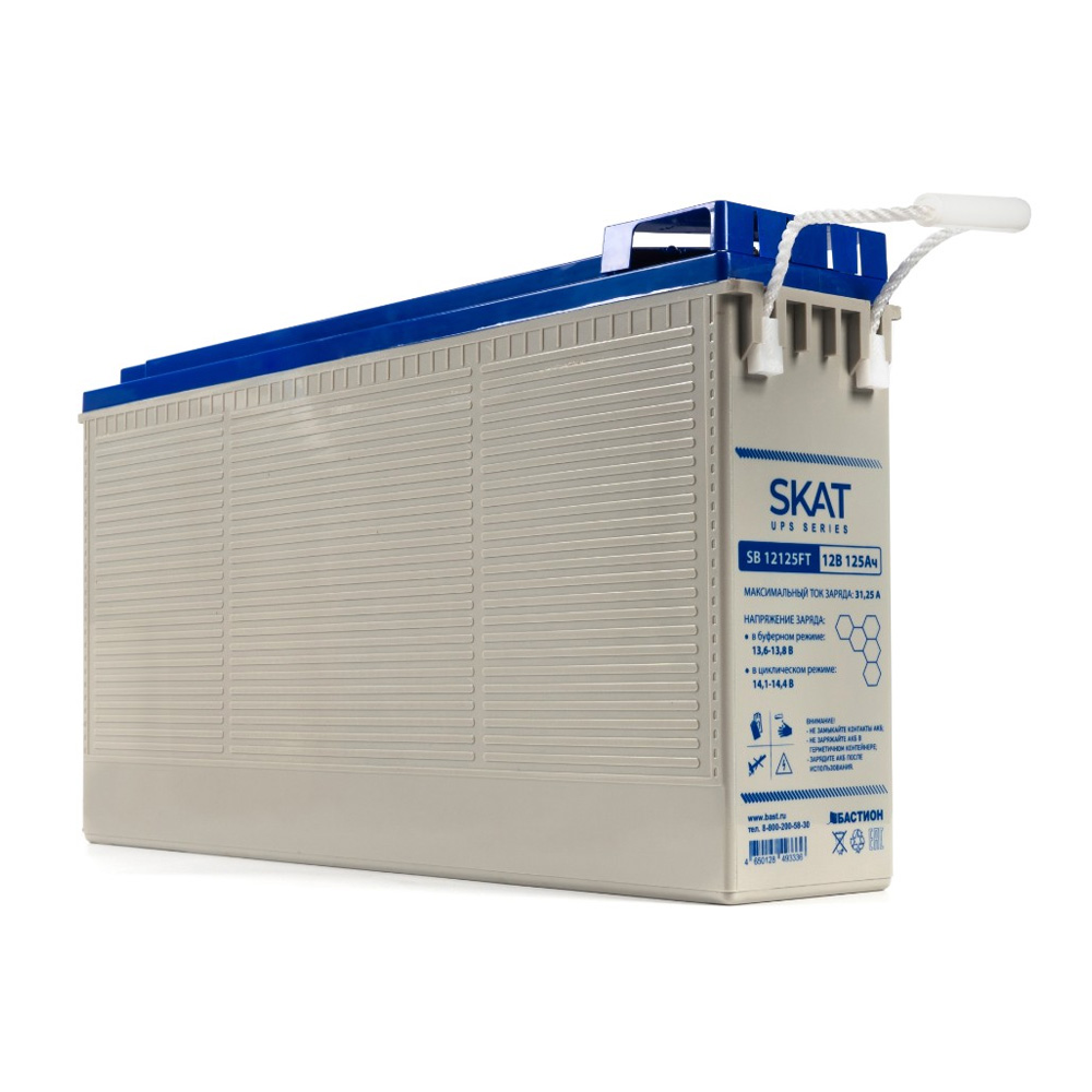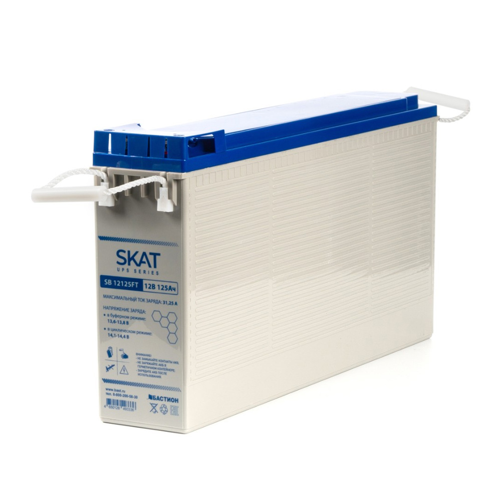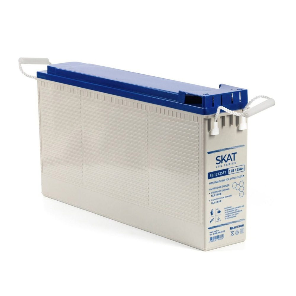 Аккумулятор герметичный свинцово-кислотный необслуживаемый СКАТ 8996 SKAT SB 12125FT относится к серии UPS и создан по технологии AGM с системой рекомбинации газов VRLA. Он предназначен для резервного питания телекоммуникационного, серверного, медицинского и промышленного оборудования большой мощности. Конструкция корпуса с фронтальными клеммами облегчает установку и обслуживание в стойках 19" и 23". Аккумулятор отличается повышенной токоотдачей, низким саморазрядом и длительным сроком службы — до 12 лет. Благодаря свинцово-кальциевым пластинам обеспечивается высокая удельная ёмкость и стабильная работа даже при изменении температуры. Устройство герметично, не требует обслуживания и может эксплуатироваться в любом положении, кроме вниз клеммами. Это надёжное решение для систем бесперебойного питания с увеличенным сроком службы и устойчивостью к циклическим нагрузкам.