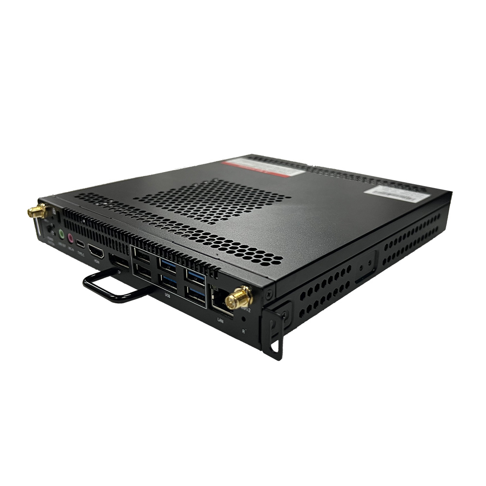 Подключаемый модуль для ПК на базе процессора Intel Core i7 UNV HB-7099-SW — компактный OPS-совместимый PC-модуль для использования со смарт интерактивными дисплеями. Модуль построен на процессоре I7-12650H (10 ядер, 16 потоков) и поставляется с Windows 11 Enterprise (не активирована). Для вывода изображения предусмотрены интерфейсы HDMI и DP с поддержкой разрешения до 3840 × 2160@60 Hz, а также поддержка 4K UHD. Подключение периферии реализовано через набор портов USB, включая USB Type-C, есть аудиоразъёмы MIC и Line Out. Для сети предусмотрен RJ45 10/100/1000M, а беспроводные возможности обеспечиваются WLAN (M.2 2230, поддержка WIFI 6E и BT 5.2) и двумя двухдиапазонными антеннами; заявлена поддержка hotspot. Модуль питается от DC 19V через OPS-интерфейс и оснащён интеллектуальным управлением вентилятором.