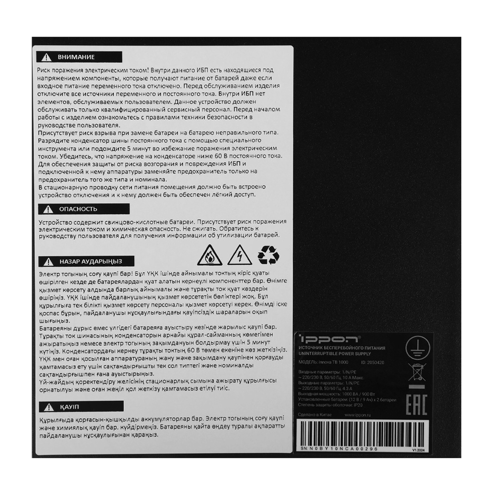 Источник бесперебойного питания (ИБП) с технологией двойного преобразования (онлайн) Ippon Innova TB 1000