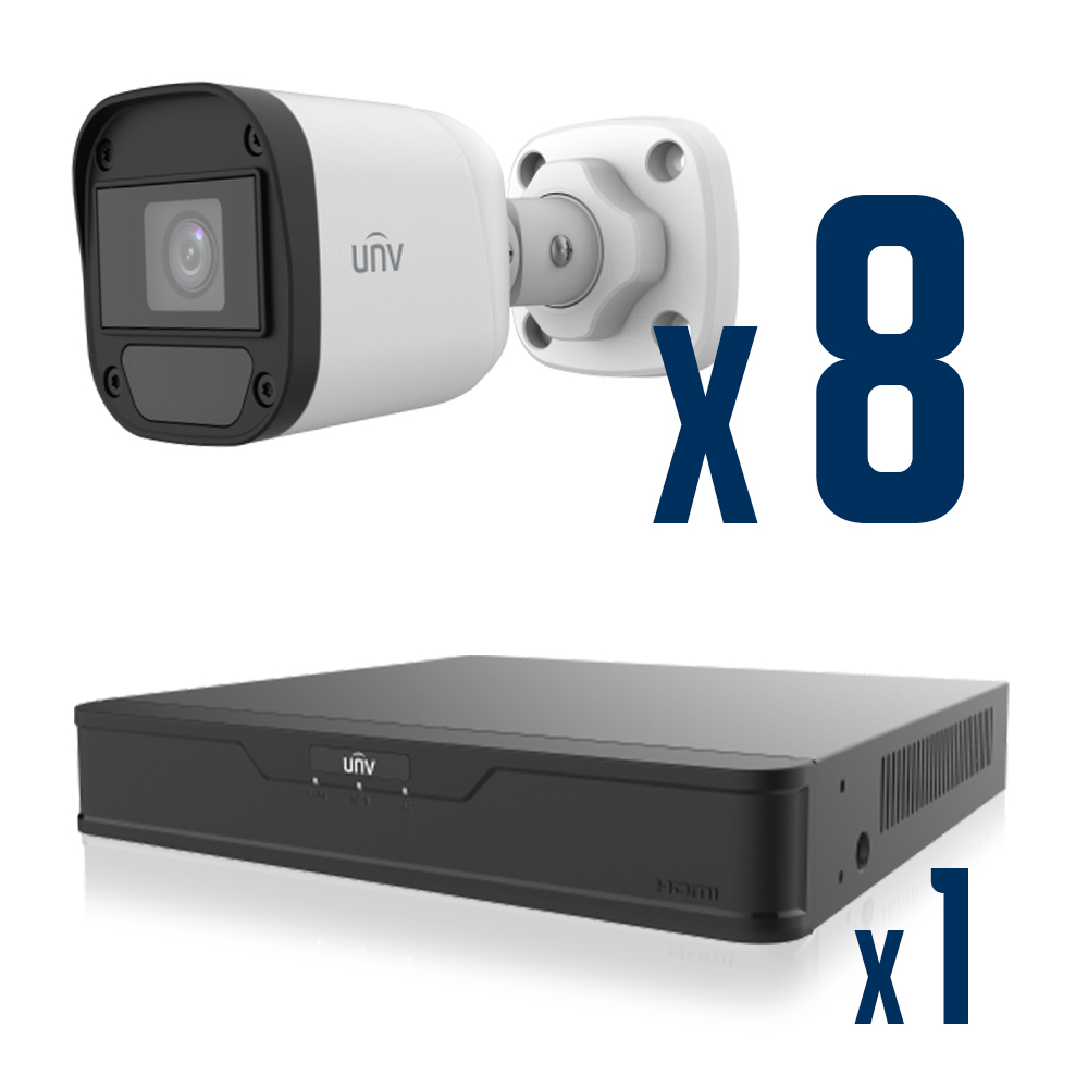 - Комплект UNV XVR301-08G3 + UHD-B12-F28 состоит из видеорегистратора UNV XVR301-08G3 v2 и камеры UHD-B12-F28
