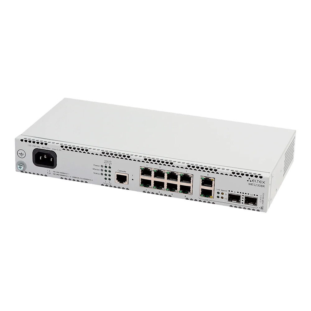 Управляемый стекируемый коммутатор уровня L3 Eltex MES2308R предназначен для подключения конечных пользователей к сетям предприятий и операторов связи. Устройство поддерживает физическое стекирование до 8 коммутаторов, обеспечивая построение масштабируемых решений. Коммутатор предлагает 8 портов Gigabit Ethernet (RJ-45) и 2 комбинированных порта 1G Combo для расширенных возможностей подключения. Пропускная способность составляет 20 Гбит/с, что позволяет эффективно обслуживать интенсивный сетевой трафик. MES2308R оснащён 512 МБ оперативной памяти DDR3 и 512 МБ ПЗУ, поддерживает до 16384 MAC-адресов и до 4094 VLAN. Реализованы QoS с 8 очередями на порт, агрегирование каналов (LAG) до 48 групп, Jumbo-фреймы до 10240 байт. Коммутатор работает при температуре от -20 до +50 °C, имеет пассивное охлаждение и устанавливается в 19" стойку (1U). Поддерживается питание 110–250 В AC и технология Dying Gasp для корректного завершения работы при отключении электропитания. Подключение к облачной системе управления ECCM (Eltex Cloud Configuration Manager) обеспечивает централизованную настройку и мониторинг оборудования.