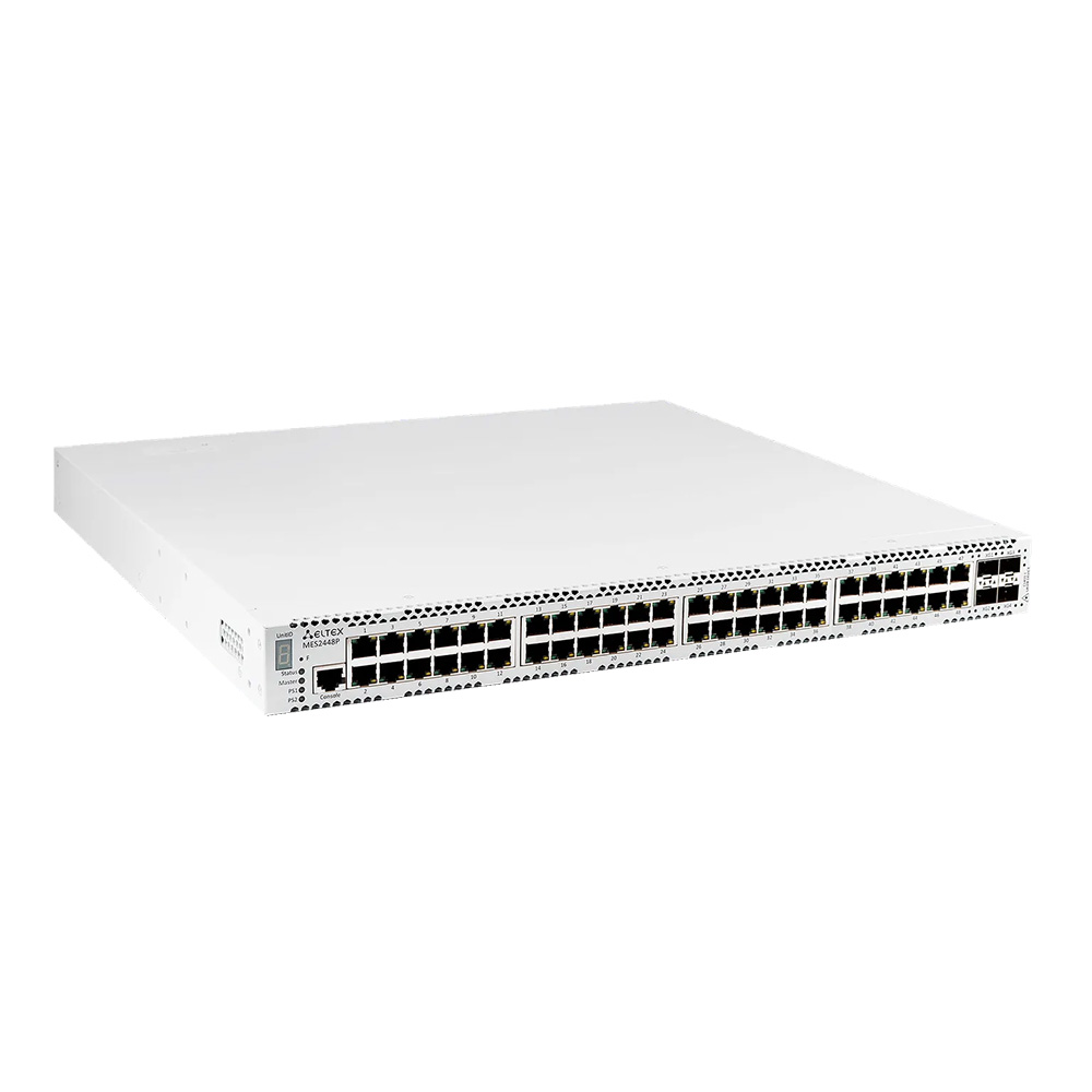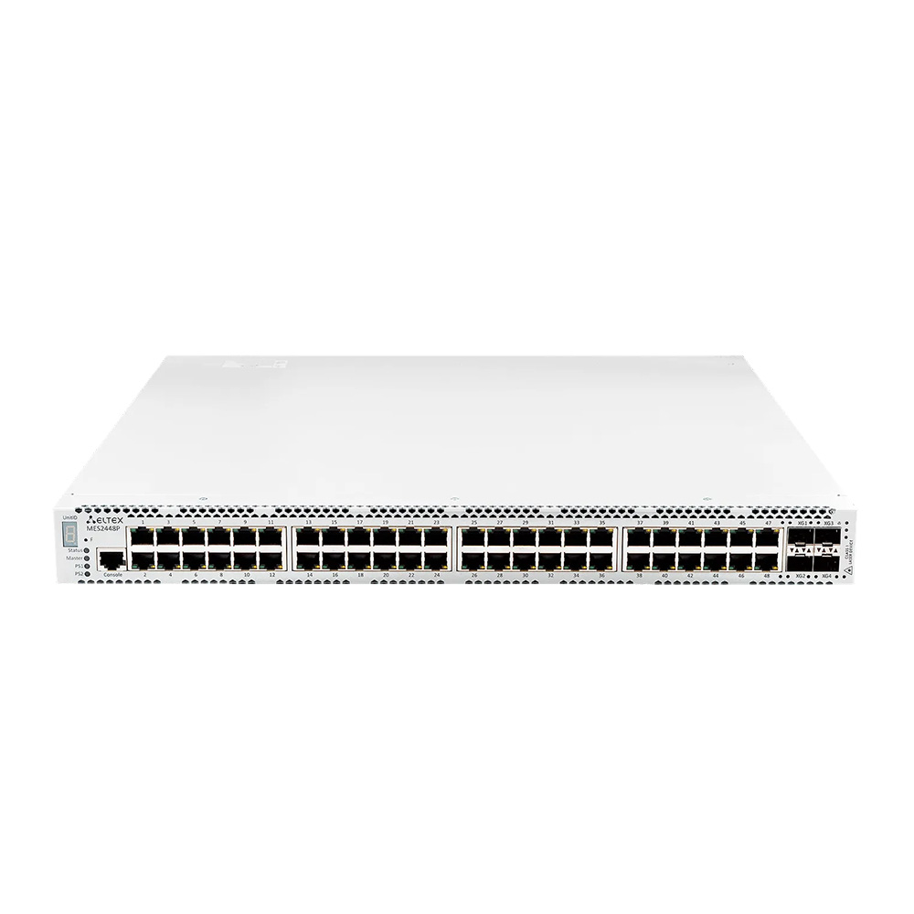 PoE-коммутатор доступа Eltex MES2448P предназначен для построения сегментов сетей предприятий, бизнеса и операторов связи. Устройство оснащено 48 портами 10/100/1000BASE-T с поддержкой PoE/PoE+ и 4 оптическими портами 10G SFP+ для восходящих соединений. Коммутатор обеспечивает высокую производительность до 176 Гбит/с, поддержку стекирования, VLAN, групповой рассылки и расширенных функций безопасности. Он оснащён двумя сменными источниками питания, рассчитанными на работу в диапазоне 170–264 В AC, при общем бюджете PoE до 720 Вт. Eltex MES2448P поддерживает QoS с 8 очередями на порт, LAG до 24 групп, а также работу с Jumbo-фреймами размером до 12288 байт. Надёжное охлаждение обеспечивают 4 вентилятора, гарантирующие стабильную работу при температуре от -10 до +50 °C. Коммутатор совместим с облачной системой Eltex Cloud Configuration Manager, упрощающей централизованное управление и настройку оборудования.