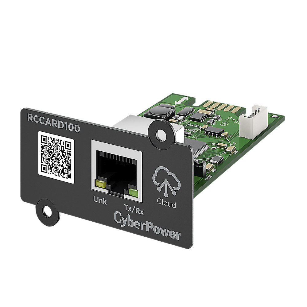 Мониторинг и управление CyberPower RCCARD100 — дополнительная надстройка управления для определенных серий ИБП CyberPower. Установите карту в слот расширения ИБП, чтобы добавить устройство в систему PowerPanel Cloud и получить удаленный мониторинг и управление через безопасный веб-портал или мобильное приложение. Конструкция plug-and-play упрощает ввод в эксплуатацию, а поддержка горячей замены позволяет установить карту без прерывания работы ИБП. Для удобства предусмотрен QR-код для быстрой настройки, а обновляемая пользователем прошивка помогает поддерживать функциональность в актуальном состоянии. Карта соответствует RoHS, а в комплект поставки входят RCCARD100, краткое руководство и Spare Jumper.
