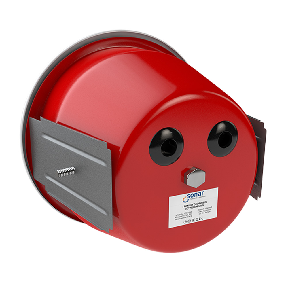 Потолочный встраиваемый громкоговоритель со стальным противопожарным колпаком Sonar SCS-106A (корпус белый) Тип изделия Навесное Номинальная мощность, Вт 6/3 Напряжение питания, В 100 Чувствительность (1Вт, 1м), дБ 91 Уровень звукового давления, дБ 99 Частотный диапазон, Гц 110–15000 Габаритные размеры, мм Ø180×140 Отверстие для монтажа, мм Ø160 Масса, кг 1.5 Степень защиты IP30 Средний срок службы, лет 10 Корпус стальной противопожарный корпус -