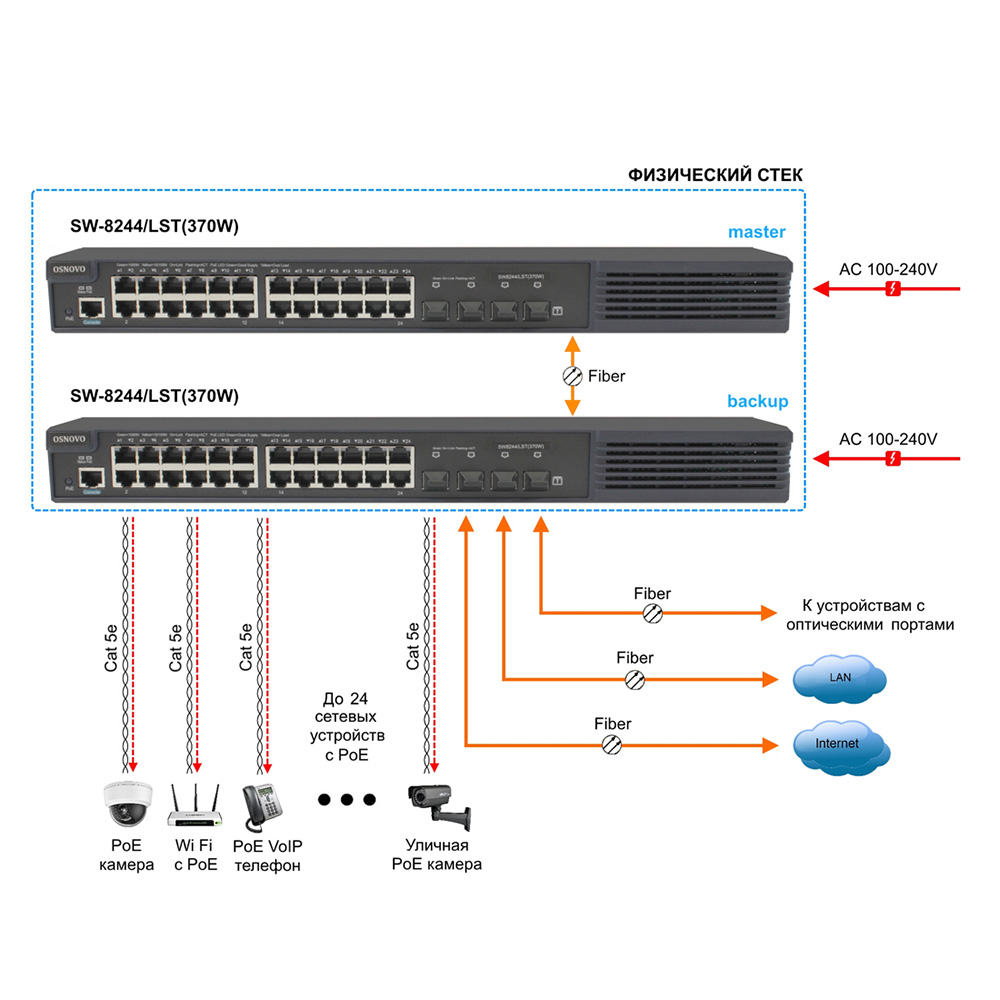 Управляемый L2+ стекируемый PoE-коммутатор Gigabit Ethernet Osnovo SW-8244/LST(370W)
