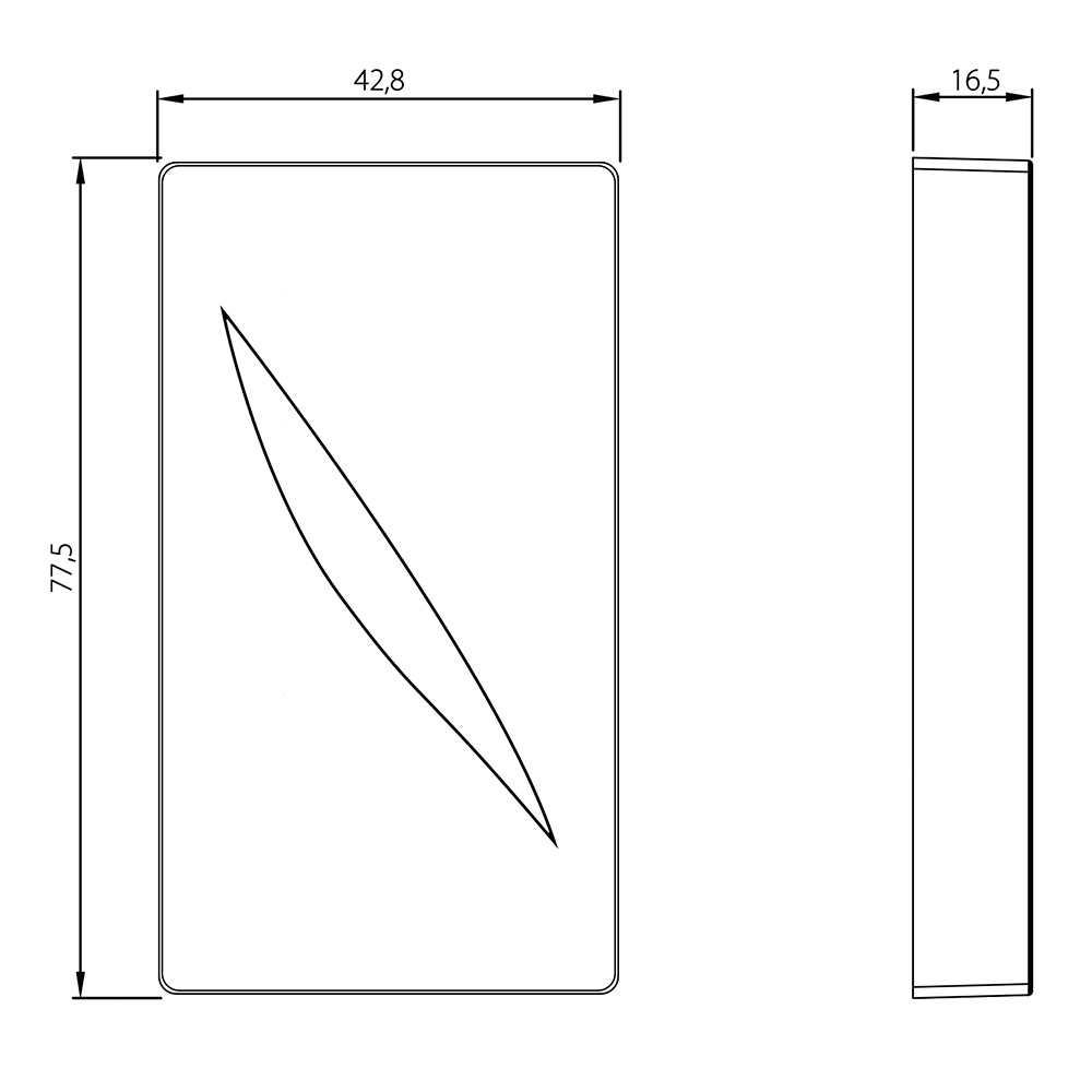 - Габариты без упаковки: 77,5×42,8×16,5 мм