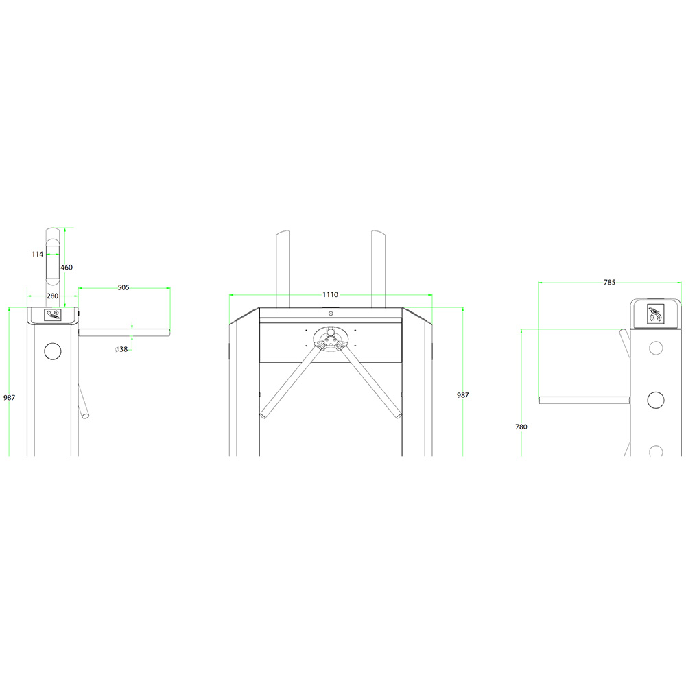 Тумбовый турникет-трипод TRASSIR TR-TP551 Интенсивность безотказной работы 1 млн раз (среднее число проходов) Пропускная способность (RFID-карта) макс. 30 чел./мин. Пропускная способность (отпечаток пальца) макс. 25 чел./мин. Ширина прохода 505 мм Площадь прохода 785 × 1110 мм Уровень защиты средний Условия эксплуатации возможна эксплуатация как внутри, так и снаружи помещений (под навесом) Напряжение питания 100–120 В или 200–240В, 50/60 Гц Энергопотребление 18 Вт в работе