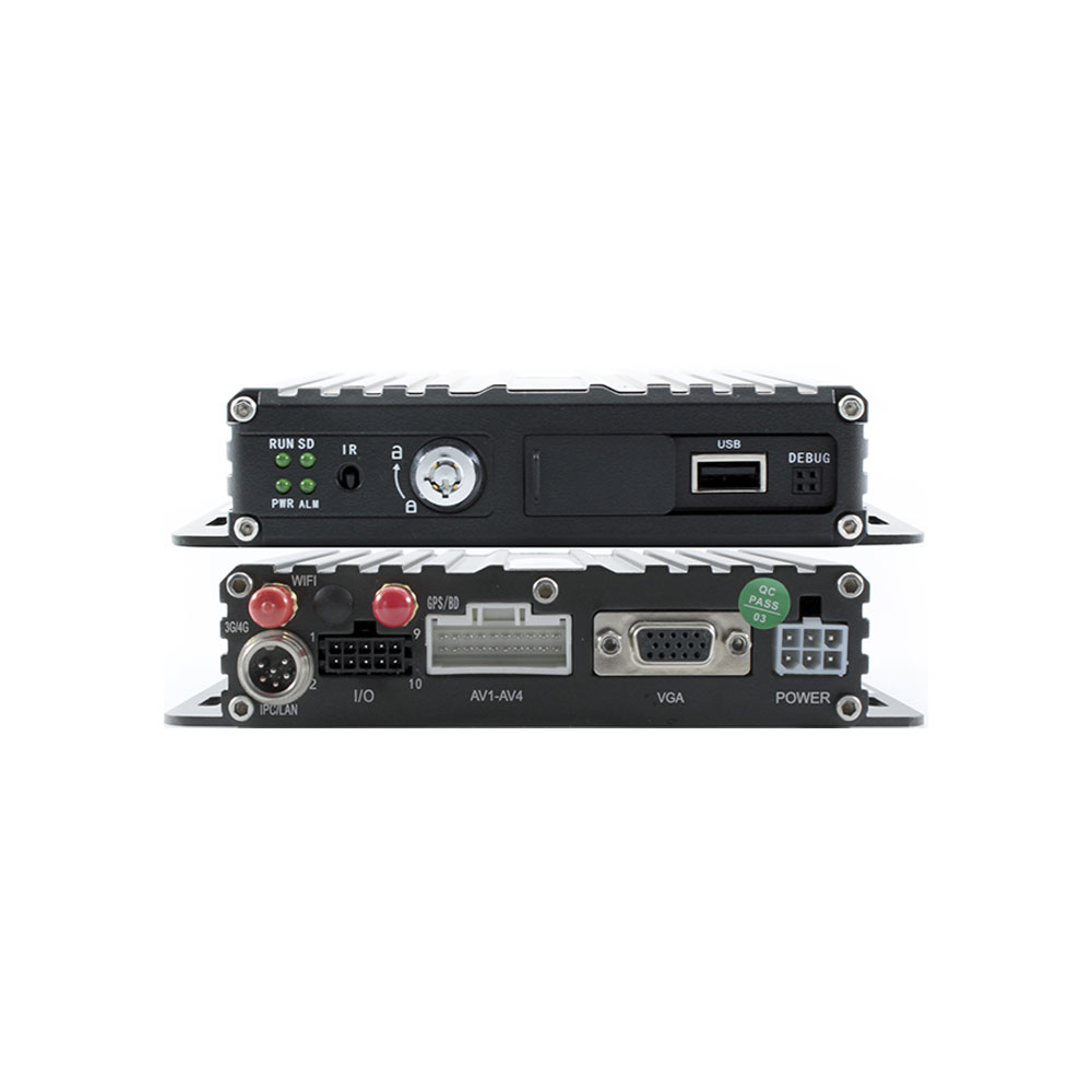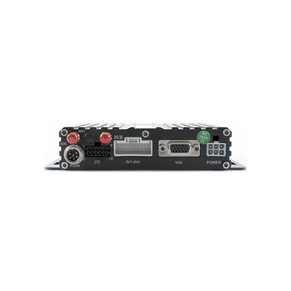 Интерфейсы: USB-порт, четыре входа BNC, выходы BNC и VGA, четыре аудиовхода и аудиовыход (авиационный интерфейс), четыре тревожных входа, тревожный выход, RS-232, выход питания 12 V, RJ-45 (для IP-камеры), ИК-порт, отладочный порт. Питание — DC 8 ~ 36 V. Мощность — 18 Вт. Размер — 142×153×32 мм. Рабочая температура — –40 °C… +70 °C.